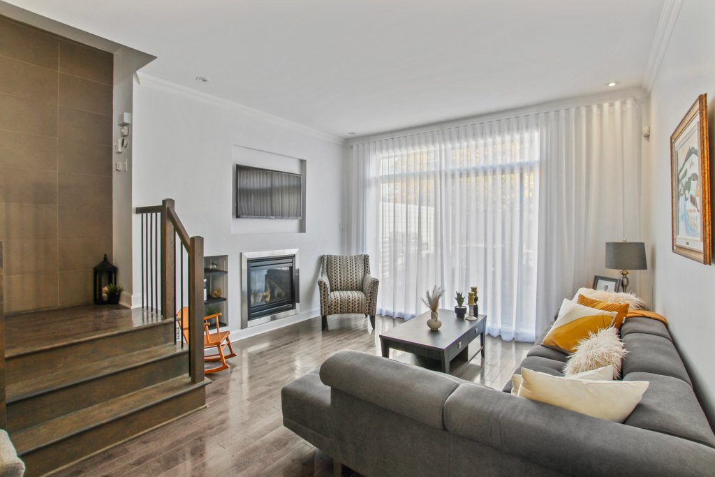Discover this beautiful 4-bedroom townhouse located in the heart of the sought-after Faubourg Boisbriand community. Spacious and bright, this home offers over 2,000 sq. ft. of elegant living space across four levels, featuring a modern kitchen, open-concept living areas, and a large private terrace — perfect for entertaining or relaxing.
